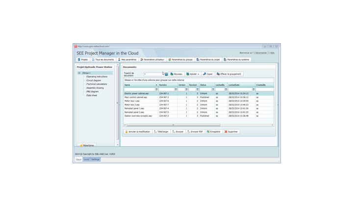 « SEE Project Manager in the Cloud » offre, en mode SaaS (Software as a Service), le même niveau de fonctionnalité que la version LT. Cette approche permet de visualiser, de gérer et de partager les projets et données électriques sur tout terminal connecté à Internet. De plus, « SEE Project Manager in the Cloud » bénéficie de tous les services du Cloud Computing.
