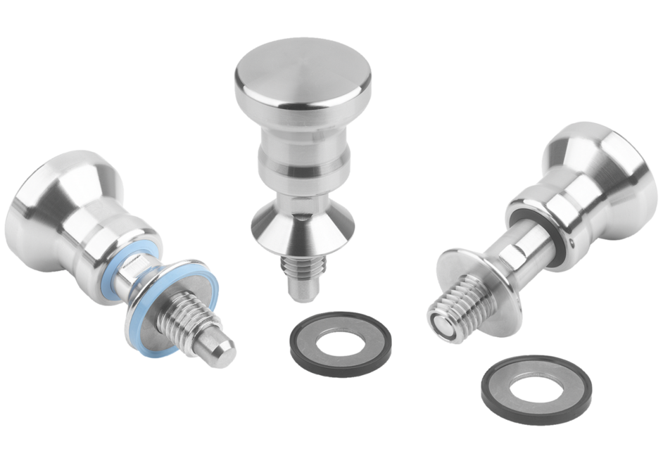 Doigt d'indexage en inox pour rondelles d'étanchéité Hygienic USIT® avec bouton de manœuvre en inox - norelem