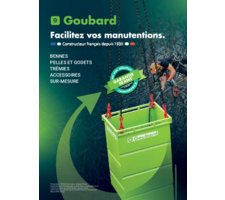 Ce catalogue Goubard vous fait découvrir toute la gamme proposée en matière de benne basculante, benne à fond ouvrant, trémie, benne automatique... Les bennes de manutention GOUBARD sont connues pour leur solidité, leur fiabilité, leur ergonomie et leur adaptation à l'environnement.