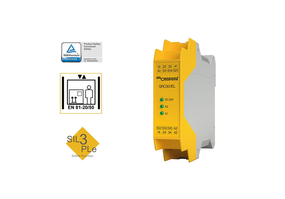 Le relais d"urgence de sécurité SRC30/EL convient parfaitement à la surveillance des ascenseurs, grilles de protection et barrières de sécurité des machines et installations.